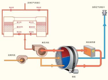 RCO(Regenerative Catalytic Oxidation)原理是:第一步是催化劑對VOC分子的吸附,提高了反應物的濃度;第二步是催化氧化階段降低反應的活化能,提高了反應速率。借助催化劑可使有機廢氣在較低的起燃溫度下,發生無氧燃燒,分解成CO2和H2O放出大量的熱,與直接燃燒相比,具有起燃溫度低,能耗小的特點,某些情況下達到起燃溫度后無需外界供熱,反應溫度在250-400℃。
