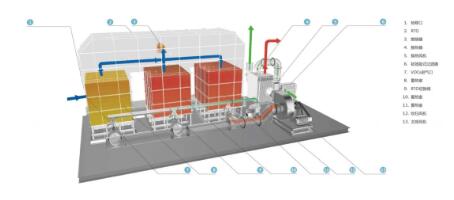 RTO(Regenerative Thermal Oxidizer,蓄熱室氧化器)原理是把有機廢氣加熱到760 ℃以上使廢氣中的VOC氧化分解成CO2和H2O。氧化產生的高溫氣體流經特制的陶瓷蓄熱體,使陶瓷體升溫而“蓄熱”,此蓄熱用于預熱后續進入的有機廢氣,從而節省廢氣升溫的燃料消耗。RTO技術適用于處理中低濃度(100-3500mg/m3)廢氣,分解效率為95%-99%。